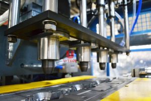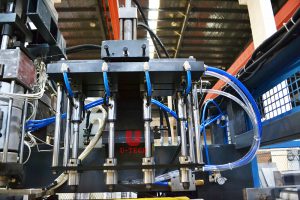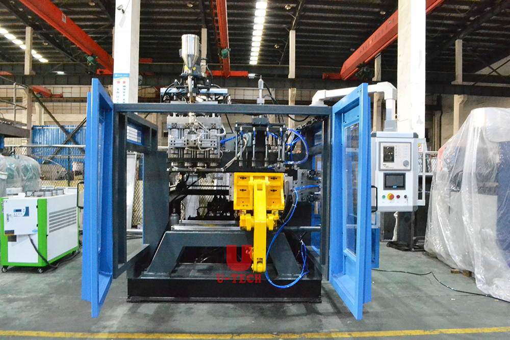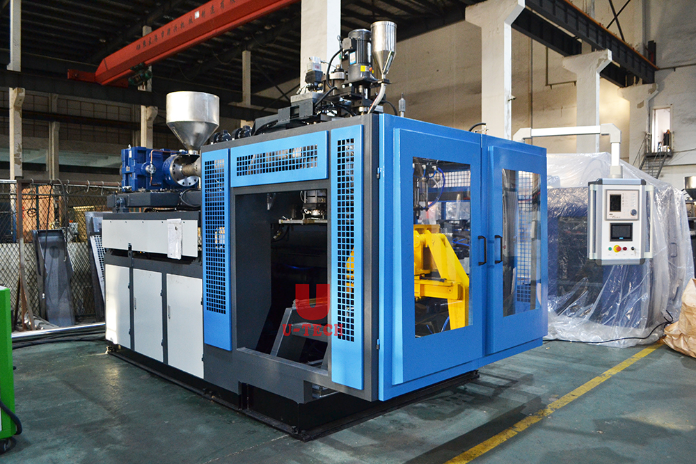 Extrusion blow molding machine is a combination of extruder, blow molding machine and mold clamping mechanism. It is composed of extruder and parison die, inflation device, mold clamping mechanism, parison thickness control system and transmission mechanism. The parison die is one of the important parts that determine the quality of blow-molded products, and there are usually side feed die and central feed die. When large-scale products are blow-molded, the storage cylinder type billet die is often used. The storage tank has a minimum volume of 1kg and a maximum volume of 240kg. The parison thickness control device is used to control the wall thickness of the parison. The control points can reach up to 128 points, generally 20-30 points. The extrusion blow molding machine can produce hollow products with a volume ranging from 2.5ml to 104l.