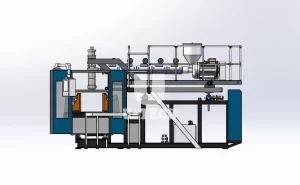 1. Electrical control system: The machine works under the PLC control(made by the Mitsubishi Co. of Japan) via a man-and-machine interface(displayed in Chinese version or in English version).The machine is equipped with a modularized temperature controller and operated through a touch-type coloure screen.All the production data can be set up,modified,searched and monitored and the machine trouble diagnosis can be completed both on the touch-type screen.The electric elements work on the non-contact working principle,thus being durable in service life.2. Hydraulic system:The machine works under the proportional pressure control. The machine is equipped with hydraulic valves and hydraulic pumps imported from world-famous companies,thus assuring consistent and reliable working performance.