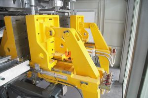 5. Mould opening,closing & moving system:A big 3-point central beam mechanism for opening & closing the mould halves and locking the mould assures balanced distribution of locking force and is free of any deformation after long-time operation.The mould is horizontally moved on linear spherical ball guideways at high traveling accuracy and rapid speed and with less resistance.