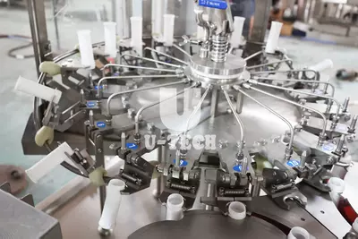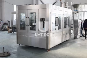 The machine is a kind of professional filling machine for Bubble water. It is made of high quality SUS304 stainless steel. Main components are processed precisely by CNC machine tool. The machine adopts advanced photo electricity to detect running status. No bottle no filling. It realize man-machine conversation because of applying touch screen for operation