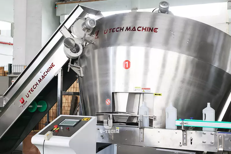 The bottle unscrambler is to disperse plastic bottles in a messy condition and arrange the bottles neatly and stand on the conveyor belt regularly to meet the requirements of high automation. The function of the unscrambler is to sort out the disorderly stacked beverage bottles and arrange them on the conveyor belt in an orderly and directional manner, and transfer them to other machinery at high speed and efficiency for the next process to improve the production efficiency of the entire production line.Machine Details