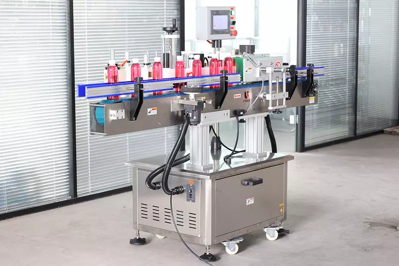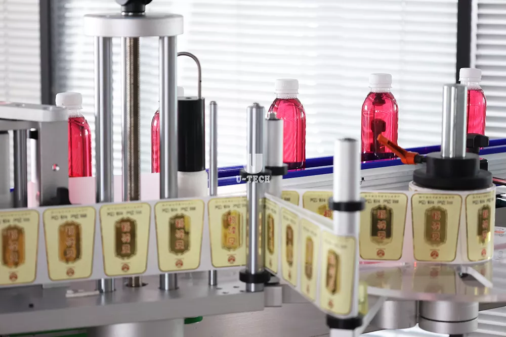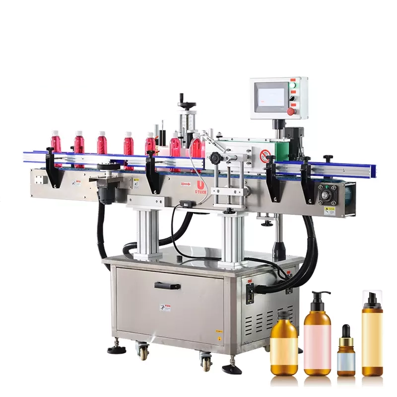 The machine can simultaneously achieve two-sided circumferential surface labeling and labeling features to satisfy the flat bottles, square bottles and bottle shaped single-sided and double side labeling, the entire circumference of the cylindrical body a half weeks labeling, widely used cosmetics industry, daily chemical industry. Optional Tape printer and inkjet printer to achieve the production date printed on the label and batch information to achieve labeling – endowed integration.