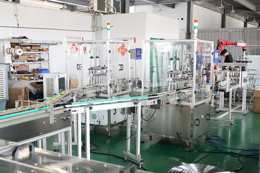 Full automatic high speed servo channel divider robot flip top cap lining wadding machine line