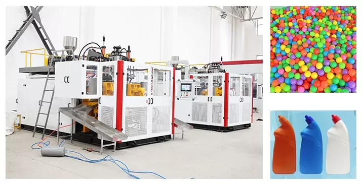 foods,toys,beverages, medicines, chemical products, pesticides, detergents, etc with material of HDPE,PE,PP,PVC from 5ml to 20L,such as water bottles,milk bottles,medical bottles,oil bottles,plastic balls,cosmetic bottles,lubricant bottles,plastic containers. The machines are low investment, high efficiency, quick and safe operation, easy for trouble shooting, maintenance and Other benefit.